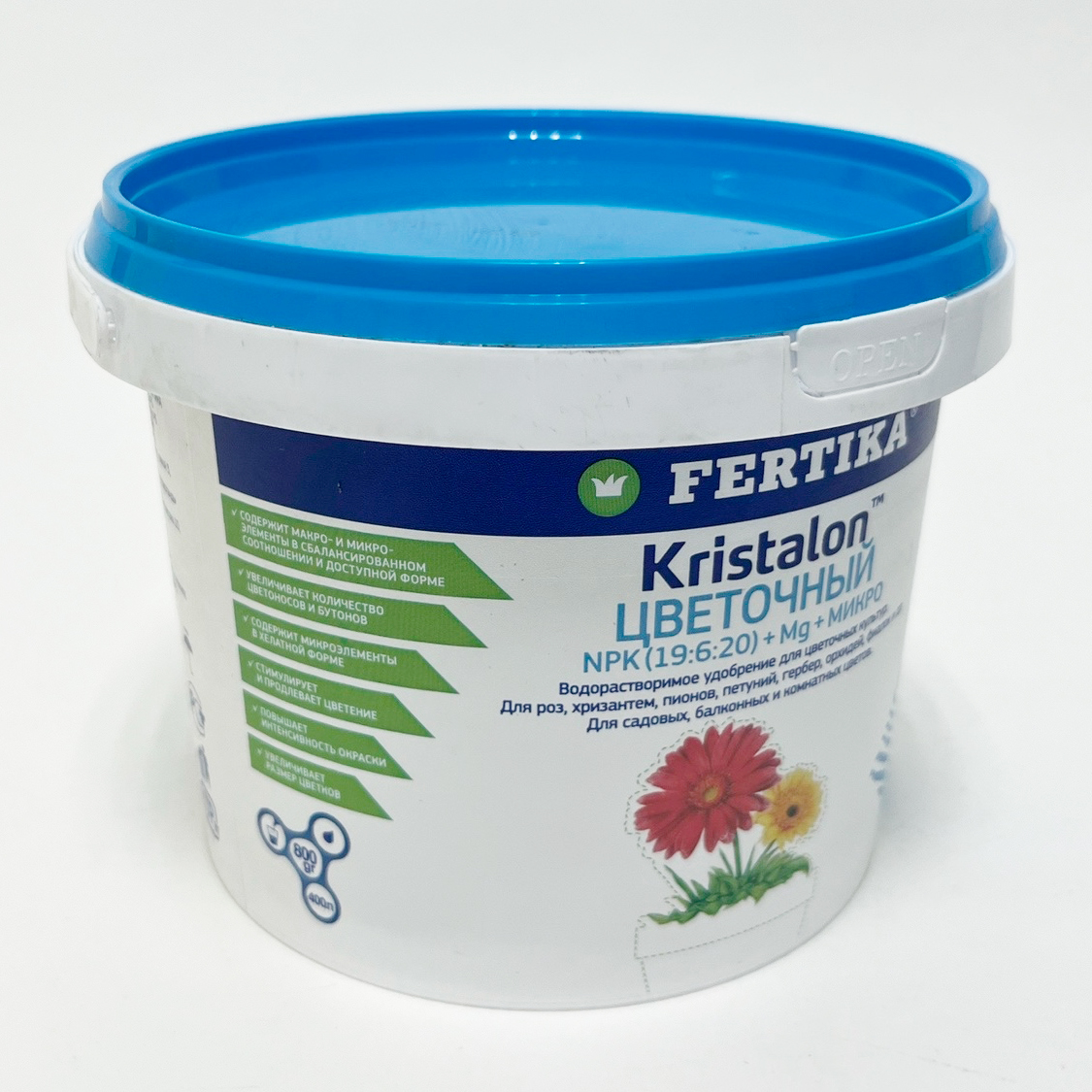 Фертика КРИСТАЛОН для цветов NPK 19:6:20+3 MG+МИКРО- Полностью водорастворимое комплексное азотно-фосфорнокалийное удобрение, содержащее микроэлементы;