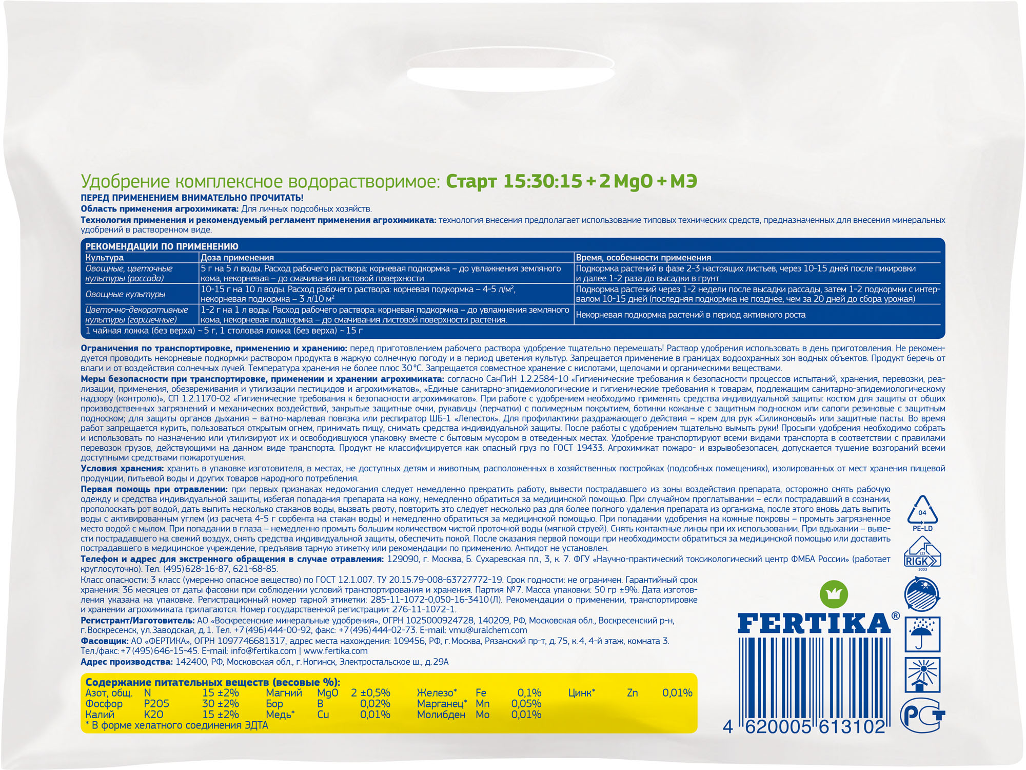 - Содержит макро- и микроэлементы в сбалансированном соотношении и доступной форме;