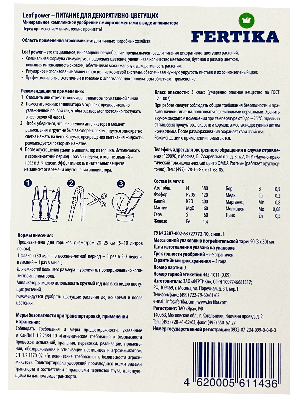 Фертика Leaf Power удобрение для цветов 3*30мл- Специальное, инновационное удобрение, предназначенное для питания декоративно-цветущих растений;