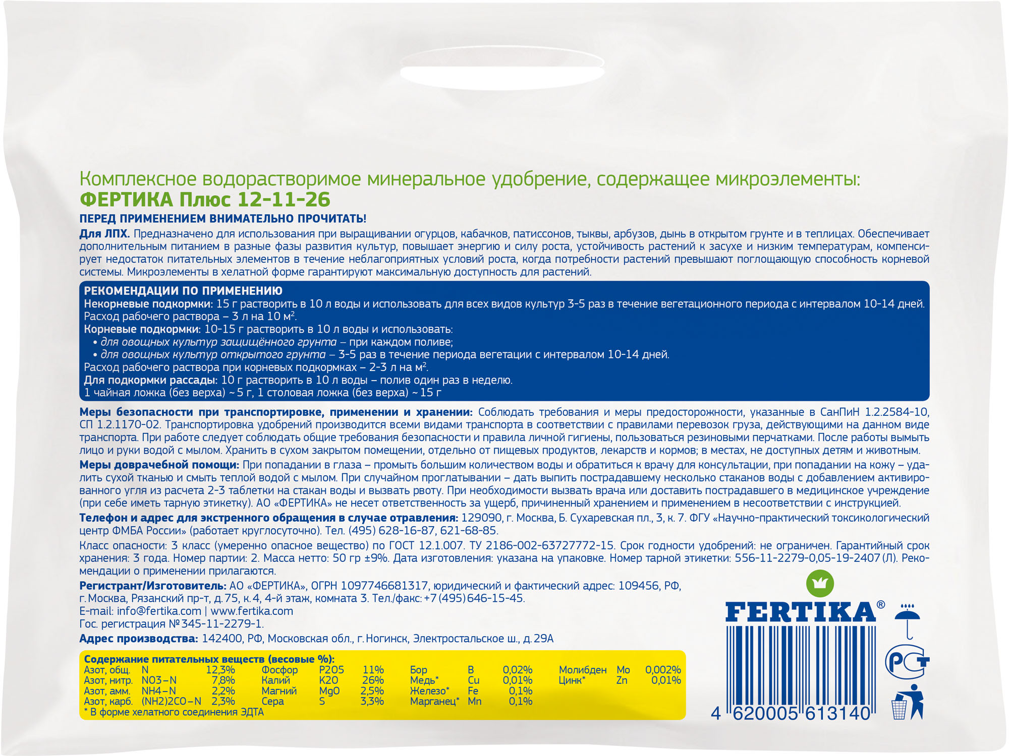 Фертика Leaf Power удобрение для тыквенных 50г- Полностью водорастворимое комплексное азотно-фосфорно-калийное удобрение, содержащее микроэлементы;