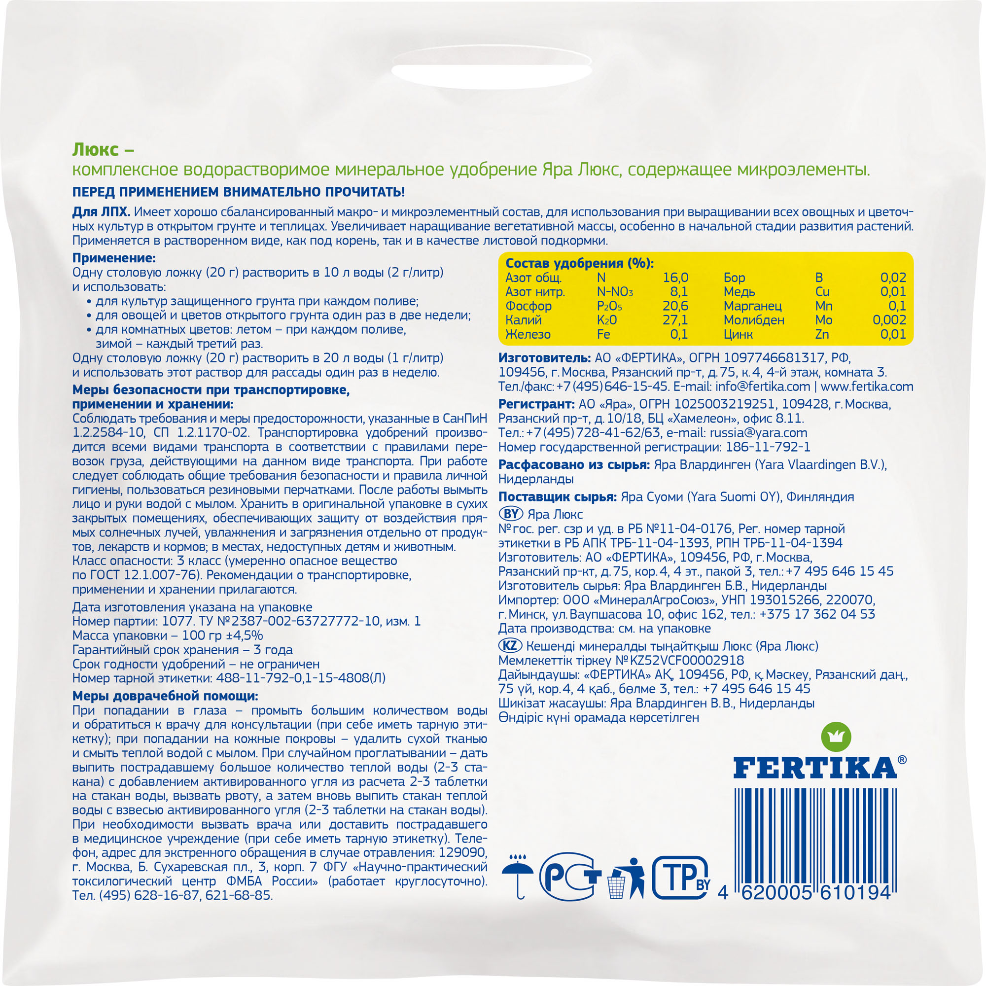 «Fertika Люкс» — это комплексное мелкокристаллическое, полностью водорастворимое удобрение. Оно предназначено для подкормок всех комнатных растений, овощных культур, цветов и рассады.- содержит все необходимые микро- и макроэлементы в оптимальном соотношении;