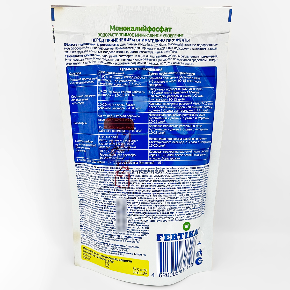 Состав: Оксид фосфора P2O5 52; Оксид калия K2O 34.