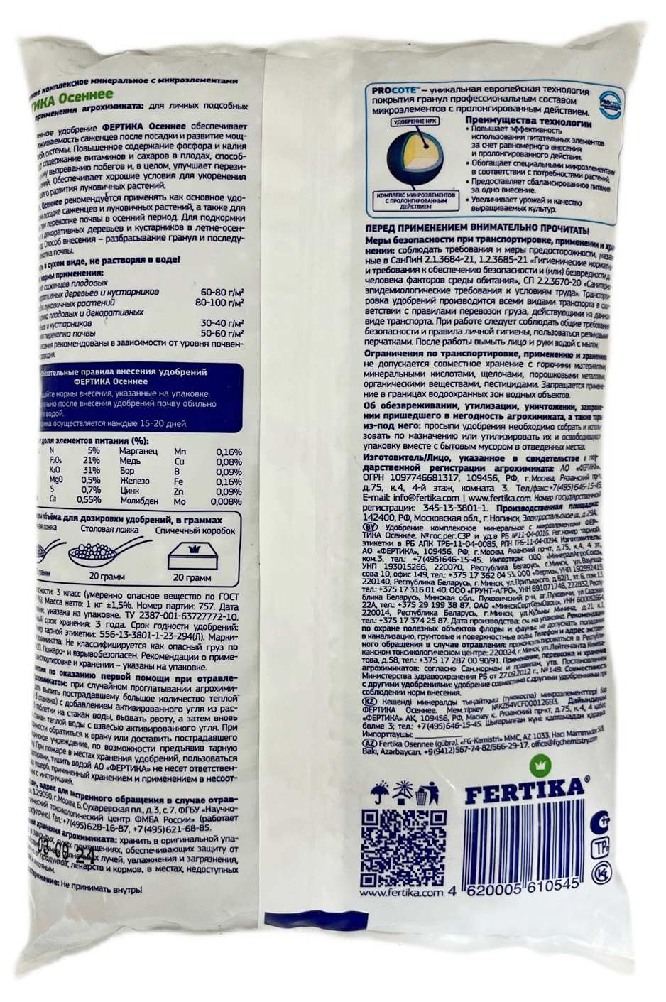 Фертика Осеннее 1 кгОсеннее удобрение NPK 4,8:20,8:31,3+МИКРО.