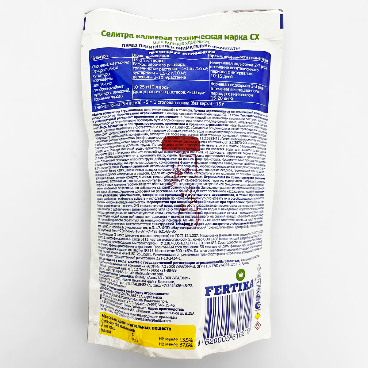 СЕЛИТРА КАЛИЕВАЯ Фертика 500г- Высокоэффективное азотно-калийное водорастворимое удобрение с повышенным содержанием калия;