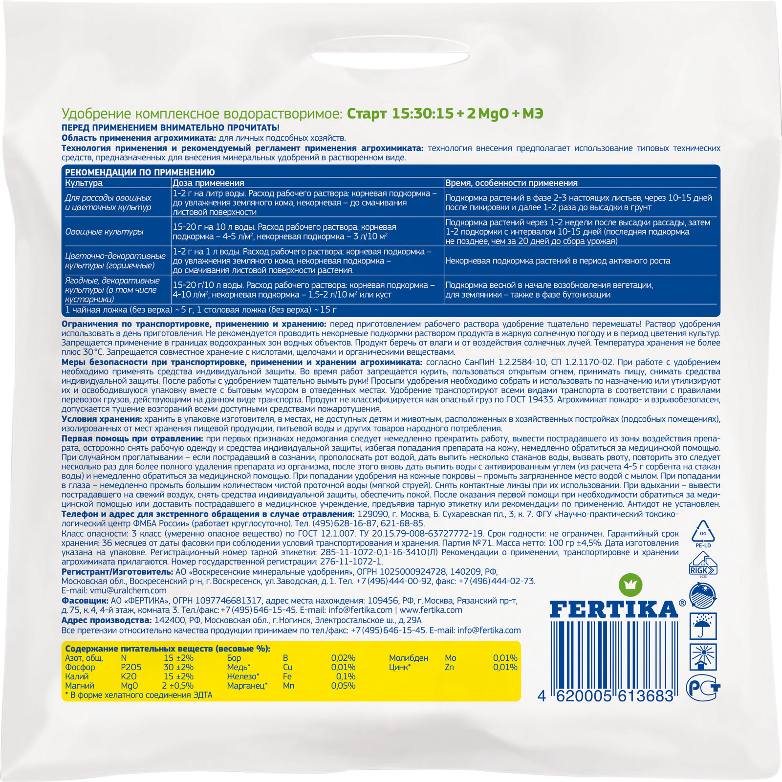 Удобрение: Фертика Start (Старт) NPK 15:30:15 + МИКРОСтартовое водорастворимое удобрение для начальных стадий роста и развития растений!