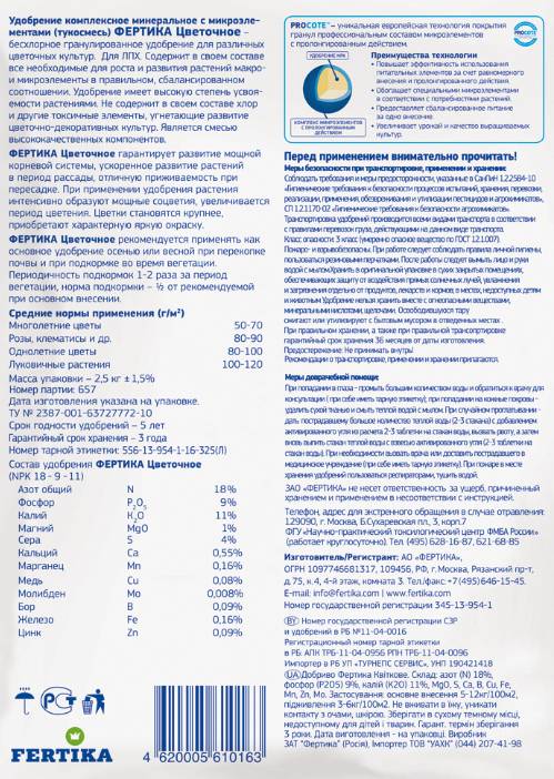 Фертика Цветочное 1,0кг- Комплексное гранулированное удобрение;
