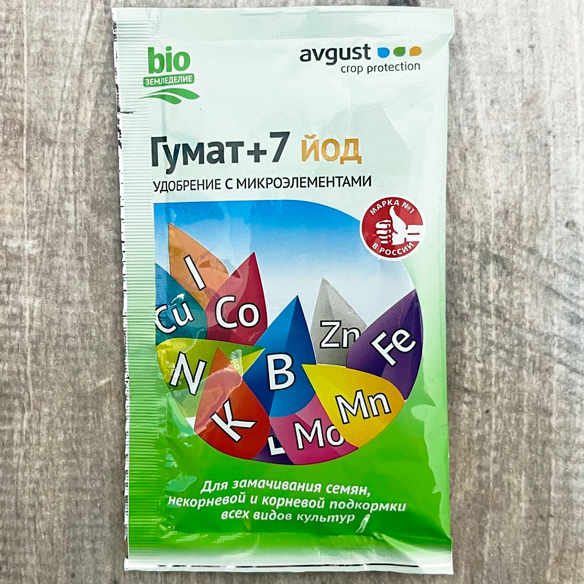 Гумат 7 йод АВГУСТУдобрение с микроэлементами. Для замачивания семян, некорневой и корневой подкормки всех видов культур.