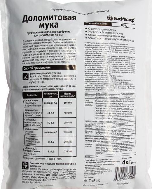Внесение доломитовой муки улучшает физические, физико-химические и биологические свойства почвы;