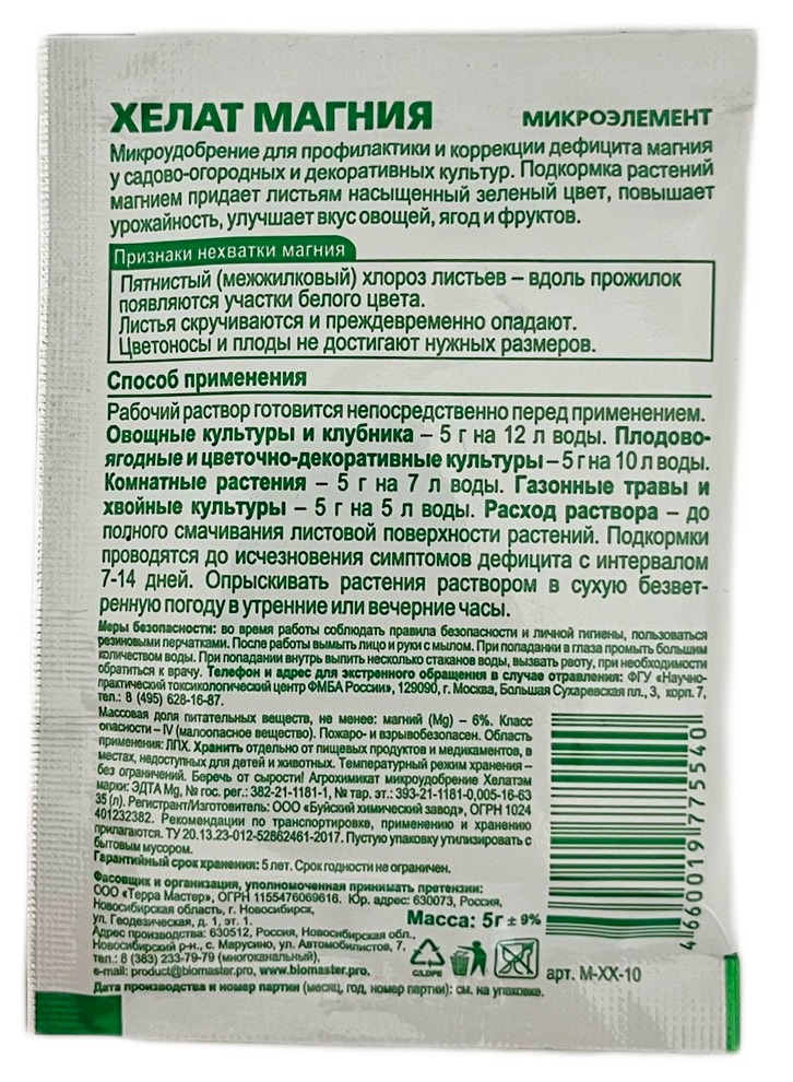 - Микроудобрение БиоМастер Хелат магния используется для подкормки садовых культур.