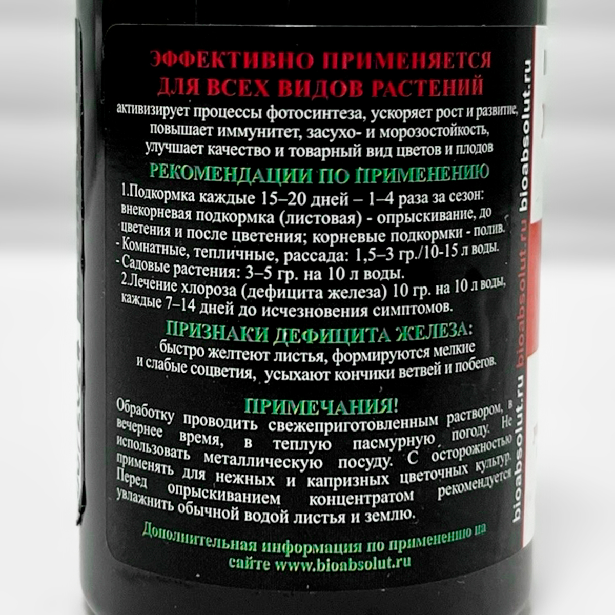 Cостав: железо (Fe) EDDHA 6%, Азот (N) 0,5%.