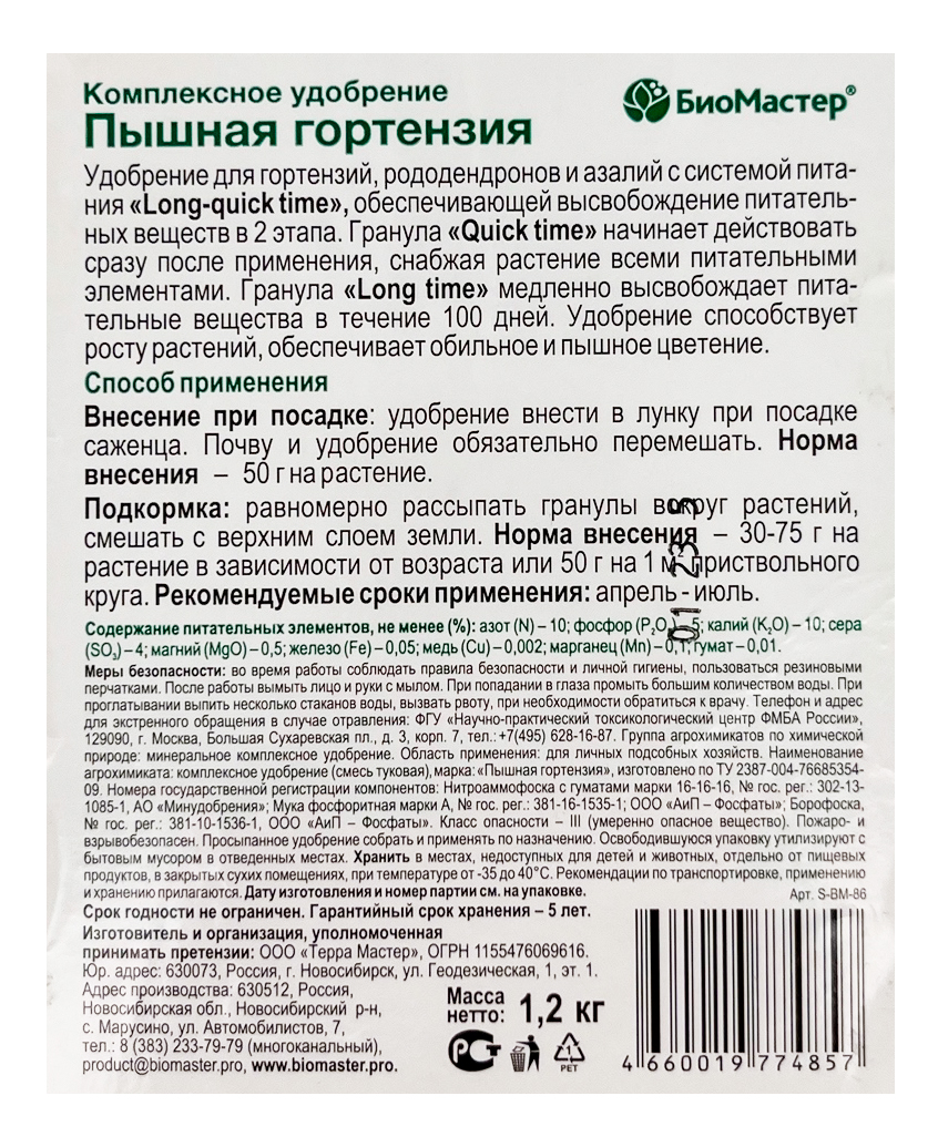 КМУ Пышная гортензия 1,2кг Биомастер