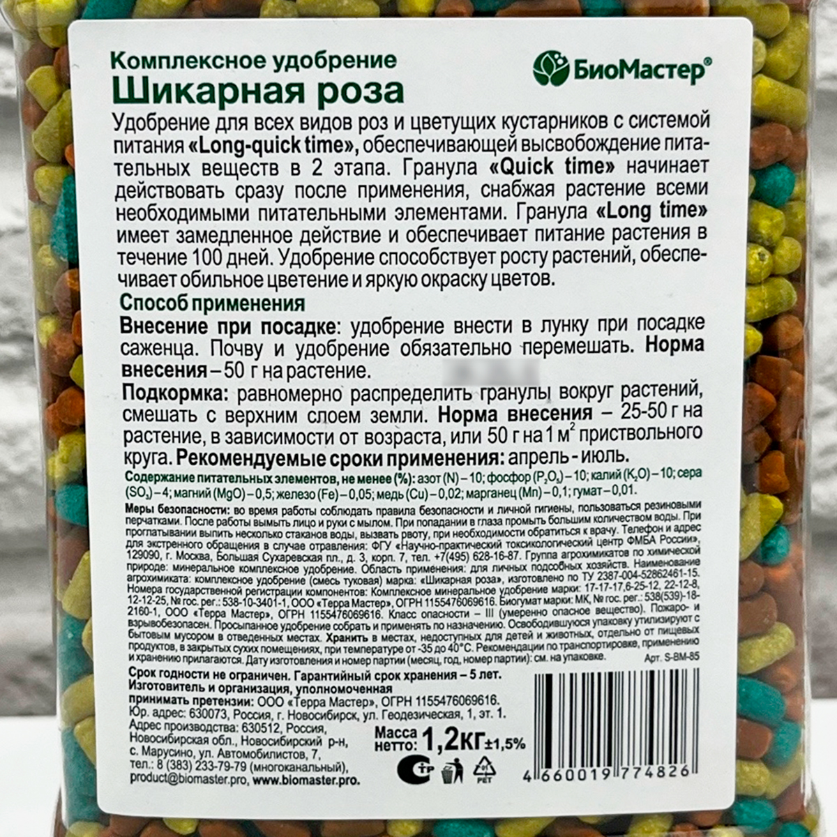 Шикарная роза БИОМАСТЕР 1,2кгУдобрение для всех видов роз и цветущих кустарников с системой питания "Long-quick time", обеспечивающей высвобождение питательных веществ в 2 этапа. Гранула "Quick time" начинает действовать сразу после применения, снабжая растение всеми питательными элементами. Гранула "Long time" имеет замедленное действие и обеспечивает питание растения в течение 100 дней. Удобрение способствует росту растений, обеспечивает обильное цветение и яркую окраску цветов.