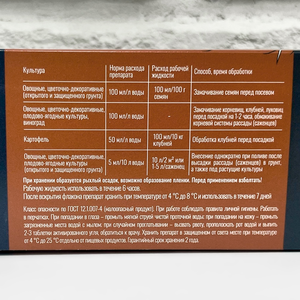 Состав: эндомикоризные симбиотические грибы Rhizophagus Glomus, природные фитогормоны, биологически активные вещества.