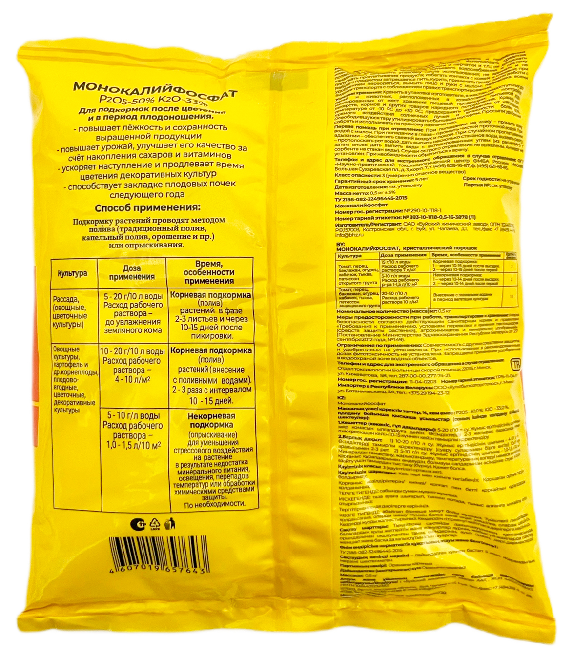 Монокалий фосфат БУЙСКИЕ УДОБРЕНИЯ 0,5кгСостав: P2O5 (%): 50, K2O (%): 33.
