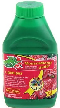 Удобрение МультиФлор Аква для роз (250 мл). Комплексное минеральное удобрение с микроэлементами и гуминовыми кислотами для подкормки всех видов роз.Это универсальное средство для роз применяется на протяжении всего вегетационного периода растений для корневой или листовой подкормки. В ранние фазы развития плода стоит поливать и опрыскивать его подкормочным раствором.