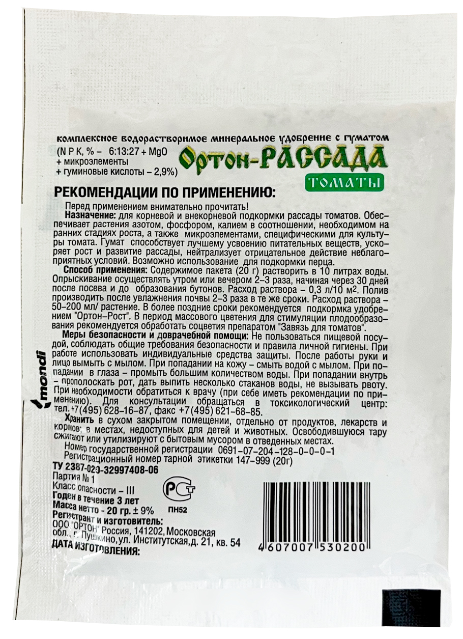 Ортон удобрение рассада Томаты 20г