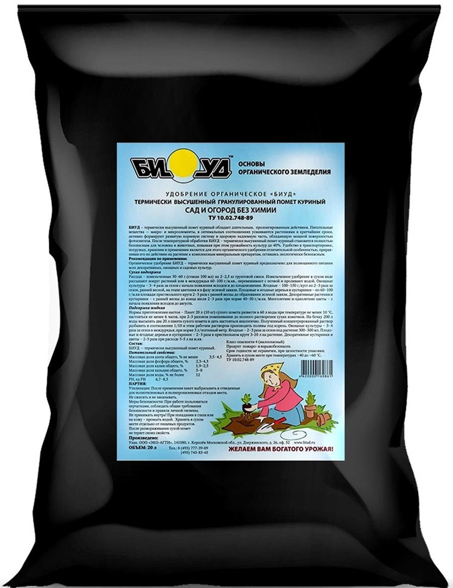 --Помет куриный термически высушенный 20л БиудСеменаПосадочный материалГоршки, кашпо, ящики для рассадыУкрашения и дизайн дачного участкаГрунтУдобрения, стимуляторыЯдохимикаты (пестициды)От комаров тараканов муравьев мышей крыс кротовИнструмент, оборудование садовоеТовары для животныхКухня садоводаФлористические материалыЛитератураФитолампыПоливочное оборудование