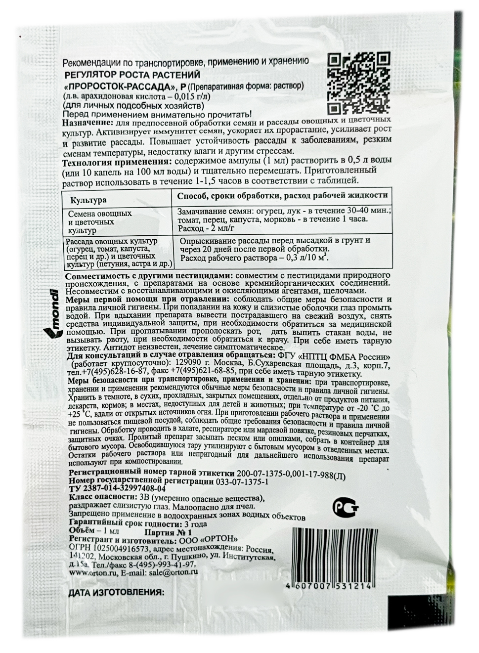 Проросток рассада 1млДля предпосевной обработки семян и рассады овощных и цветочных культур.