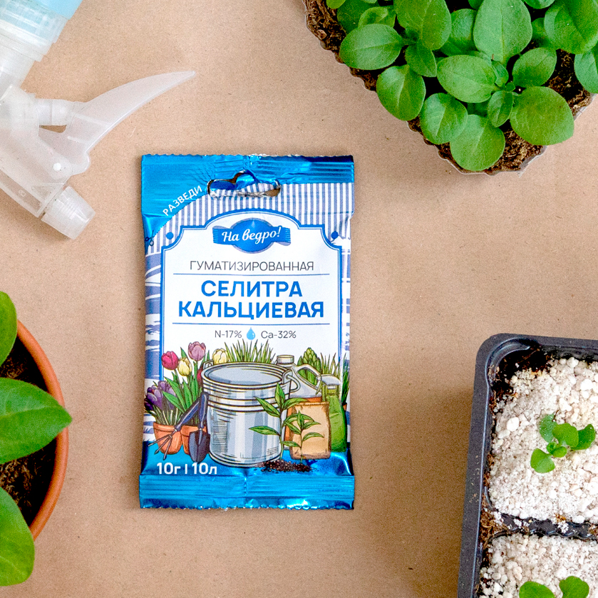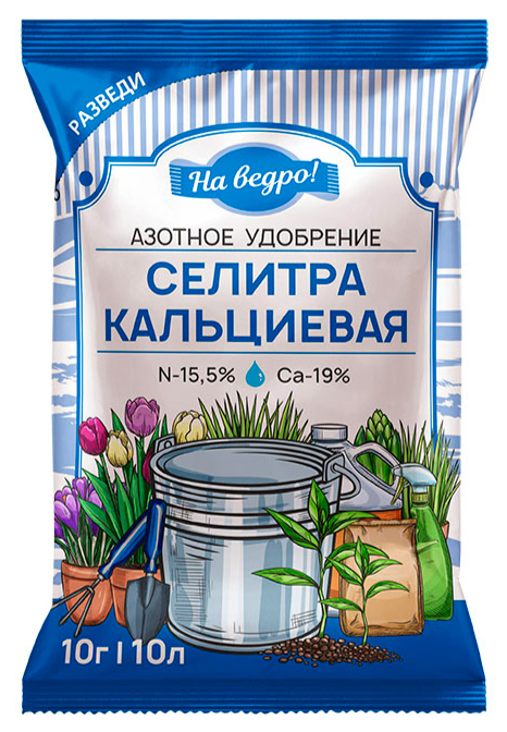 Водорастворимое удобрение "Селитра кальциевая", на ведро!, создано для подкормки растений в открытом и защищённом грунте. Повышает плодородие и устраняет дефицит кальция в почве, обеспечивает питательными элементами, стимулирует рост и развитие растений. Гуматизированная. Перед использованием внимательно ознакомьтесь со способом применения и мерами безопасности на упаковке. Масса нетто: 10 г=10 л раствора.Характеристики