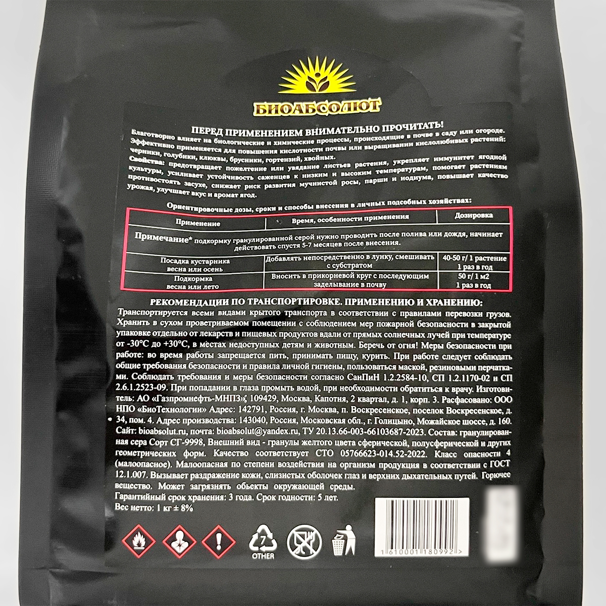 СЕРА ГРАНУЛИРОВАННАЯ (S) - почвоулучшитель для кислолюбивых растений «БИОАБСОЛЮТ», гранулы для врыхления в грунт.СВОЙСТВА ГРАНУЛИРОВАННОЙ СЕРЫ ДЛЯ РАСТЕНИЙ: