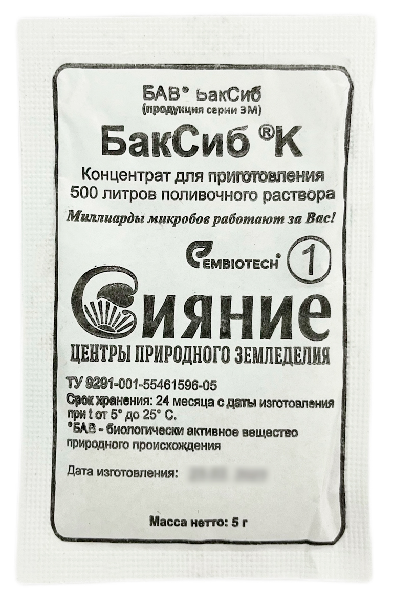 Сияние БакСиб К 5гВосстанавливает плодородие почвы, ускоряет развитие растений, повышает урожайность, подавляет болезни растений.