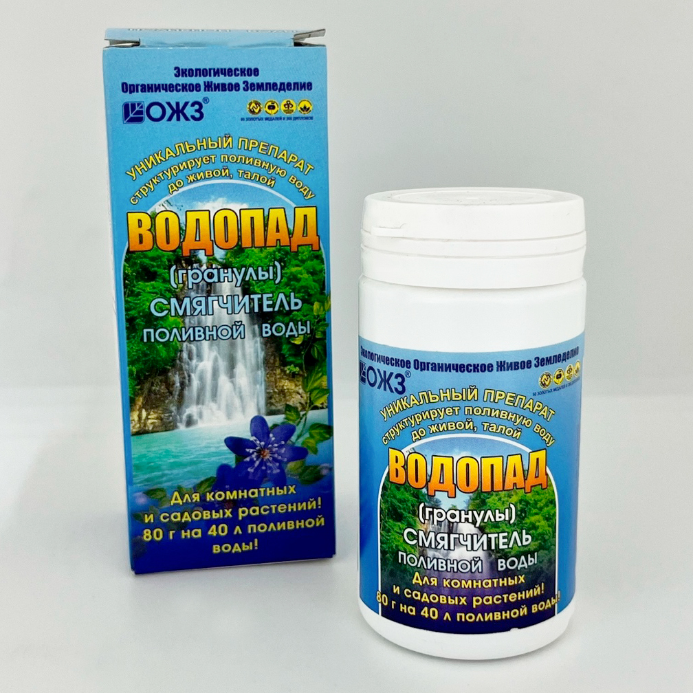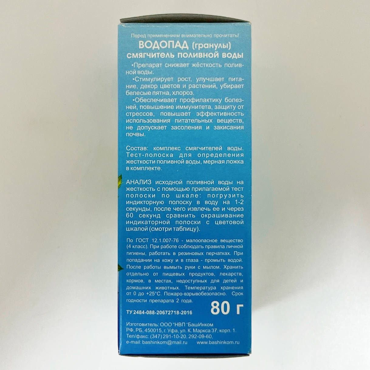 Водопад гранулы смягчитель поливной воды 80гСтимулирует рост, улучшает питание, декор цветов и растений, убирает белесые пятна, хлороз.