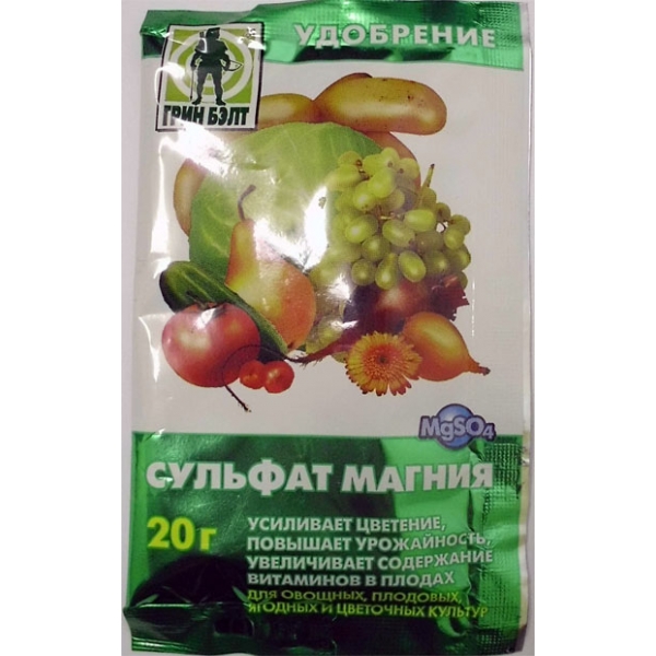 Сульфат магния (магний сернокислый) — качественное удобрение для плодовых, овощных, ягодных и цветочных культур, которое применяется при дефиците магния в почве.Недостаток магния сопровождается хлорозом листьев — они начинают бледнеть (или розоветь).