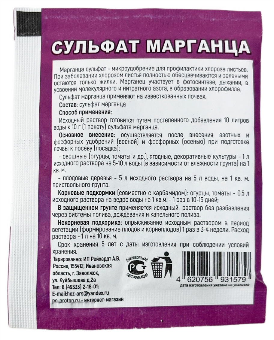 Микроудобрение сульфат марганца 10г- для восполнения недостатка марганца;