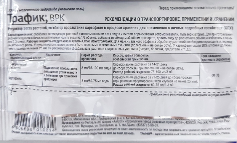 Трафик 3мл от прорастания лука и картофеляРегулятор роста против прорастания лука и картофеля во время хранения.