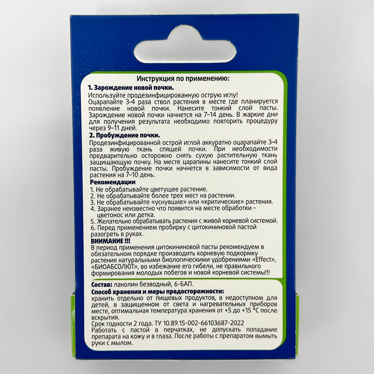 Состав: ланолин безводный, 6-БАП.