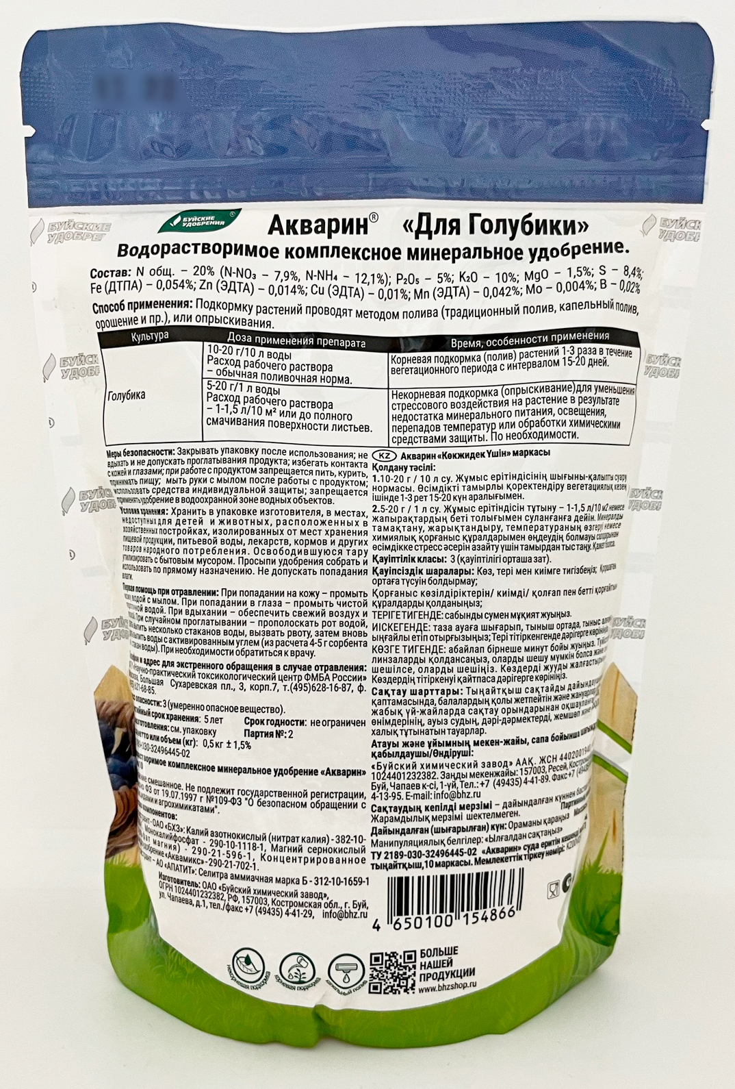 Удобрение Акварин для Голубики 500г дой-пак Буйский Химзавод