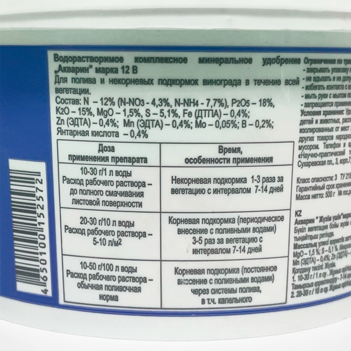 Это водорастворимое комплексное удобрение широкого спектра действия для винограда. Он содержит в своем составе кроме основных элементов питания хелатные микроэлементы.