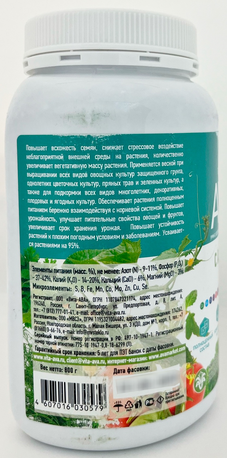 Удобрение AVA Универсал с Азотом (800г)Основное удобрение для всех видов овощных,зеленных и цветочно-декоративных культур.