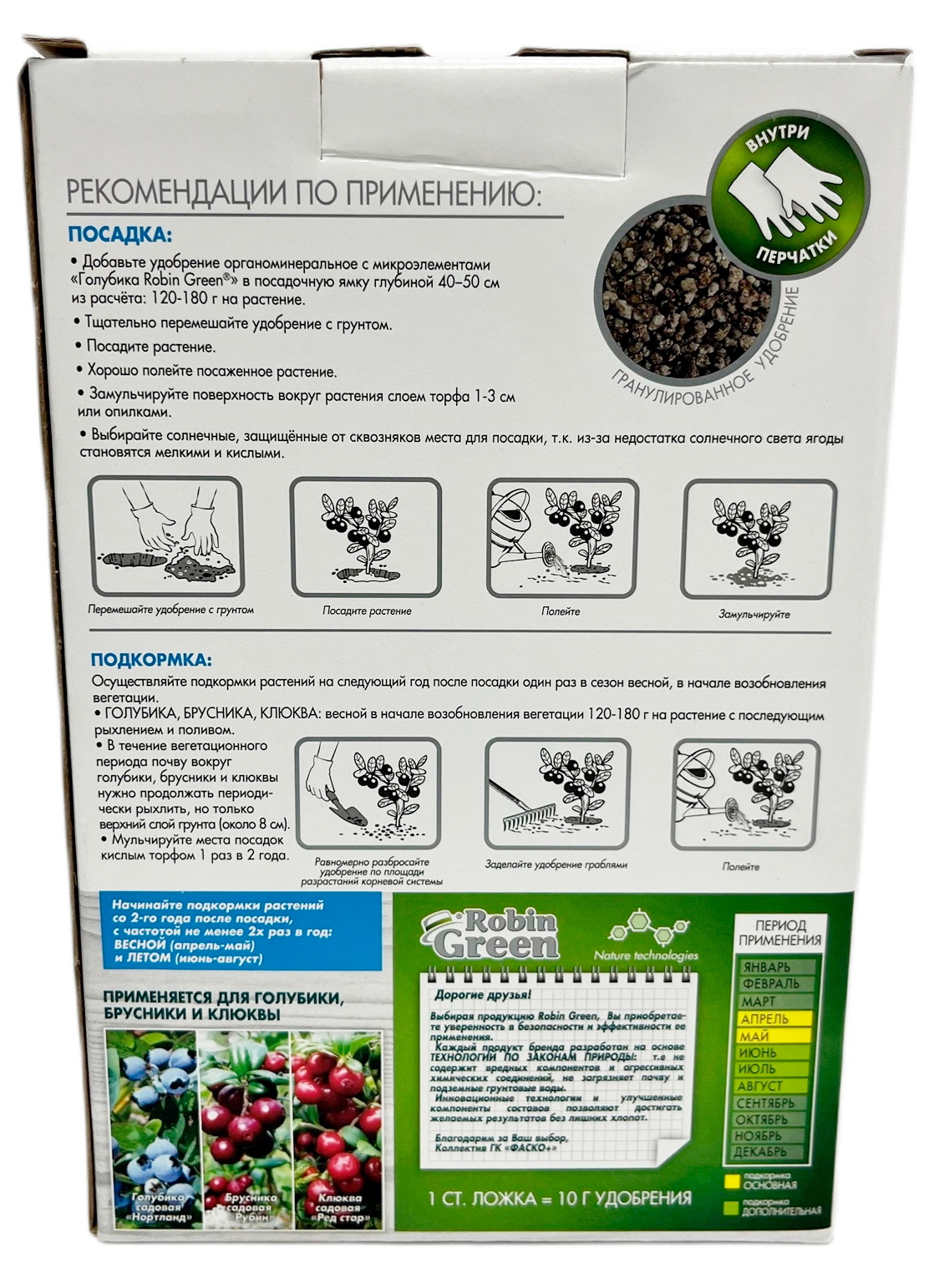 Удобрение органоминеральное с микроэлементами для Голубики Robin Green- улучшает вкусовые качества;