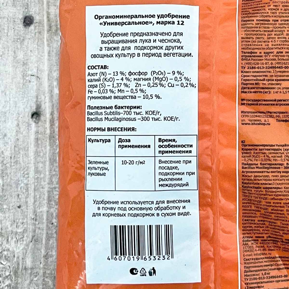 Органоминеральное удобрение УНИВЕРСАЛЬНОЕ марка 12 для лука и чеснока 1кгУдобрение предназначено для выращивания лука и чеснока, а также для подкормок других овощных культур в период вегетации.