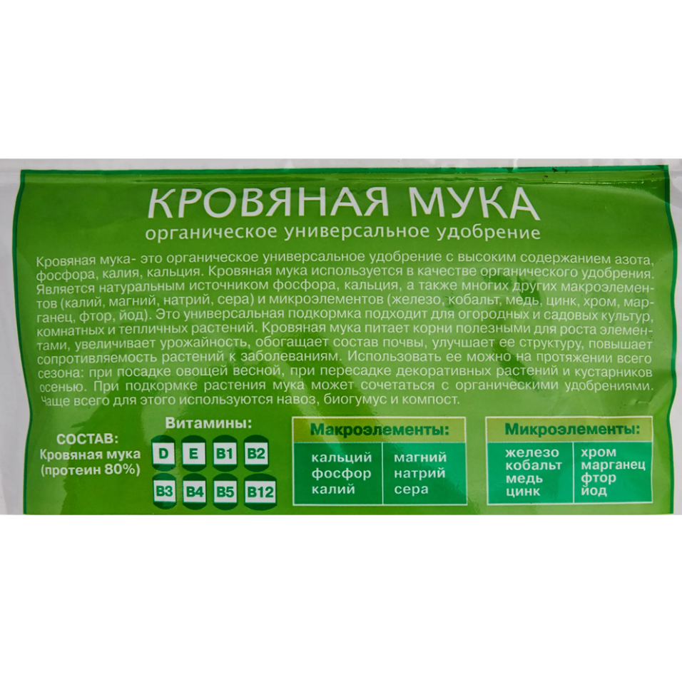Удобрение Оргавит кровяная мука 1 кгСостав: Кровяная мука, протеин-80%, макроэлементы, не менее: общий азот (N)- 13%;