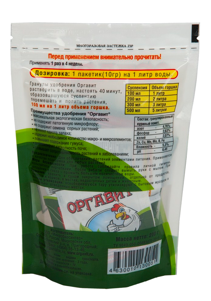 Удобрение Оргавит Куриный 200г (10г*20шт)