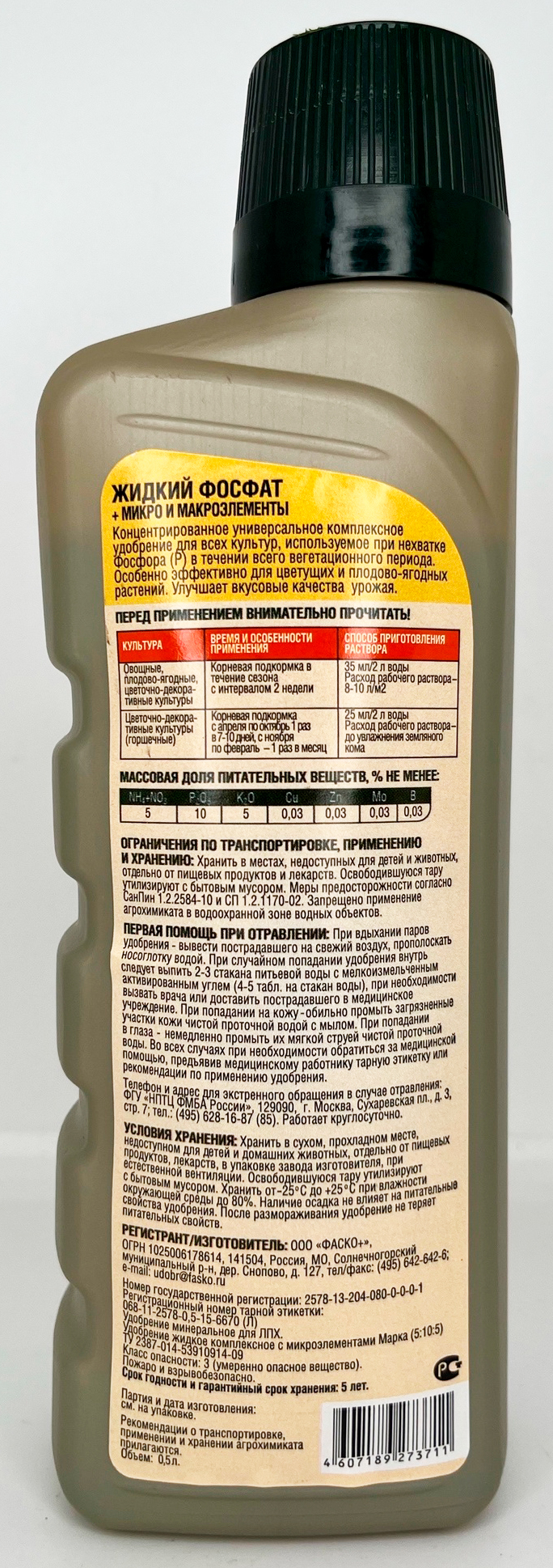 Удобрение жидкое 500мл Фосфат ФАСКО