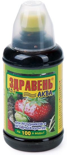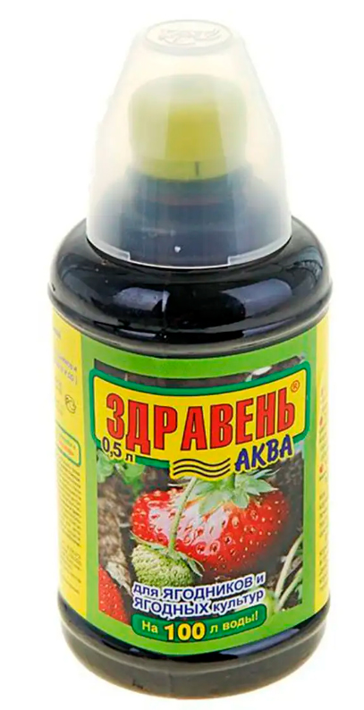 «ЗДРАВЕНЬ-АКВА для ягодников и ягодных культур» — жидкое комплексное органоминеральное удобрение для корневых и внекорневых подкормок ягодников и ягодных культур (клубника, смородина, малина и др.) в личных подсобных хозяйствах.- Содержит оптимальный для подкормки ягодников и ягодных культур набор макро и микроэлементов. Не содержит хлора.