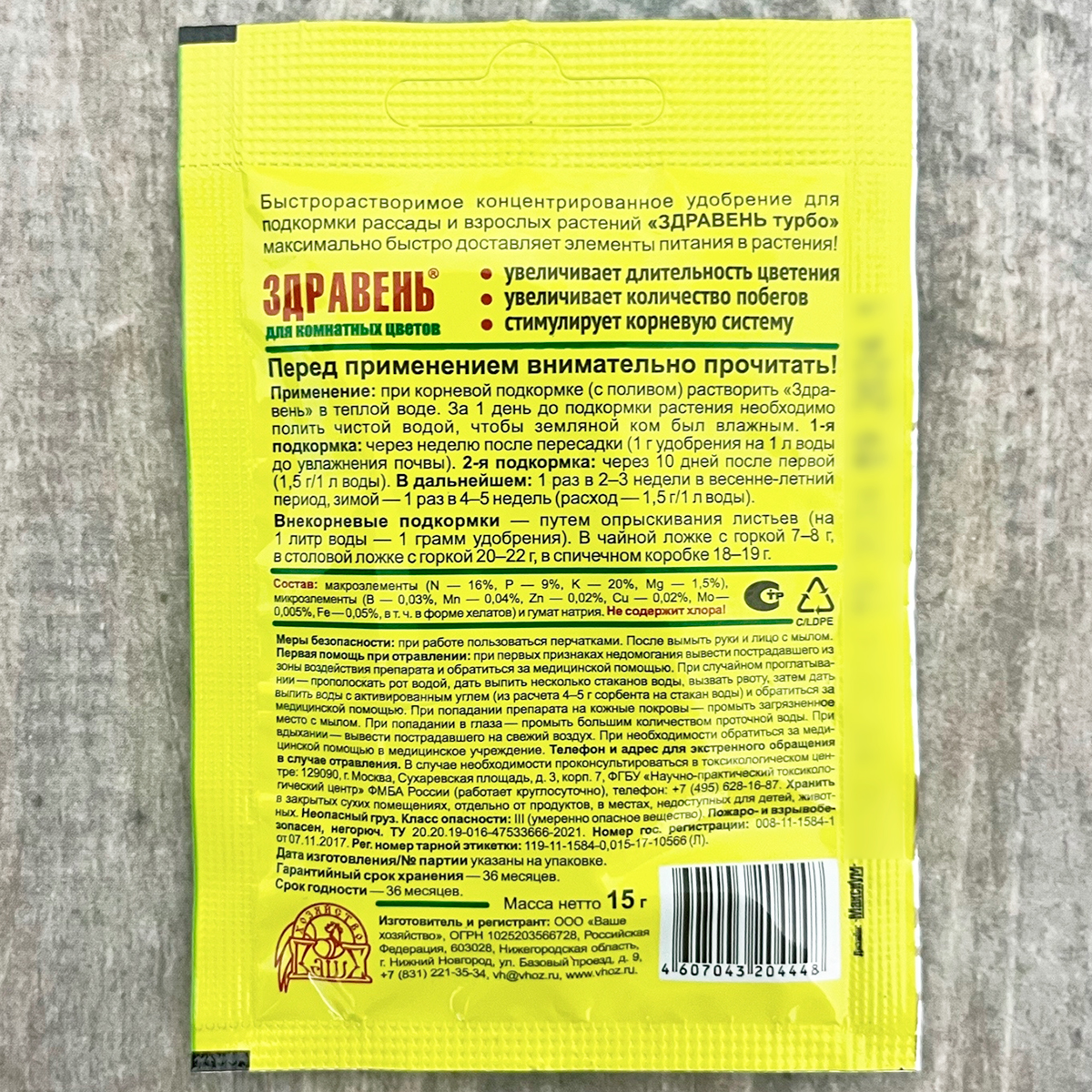 Здравень Турбо 15г для комнатных цветов