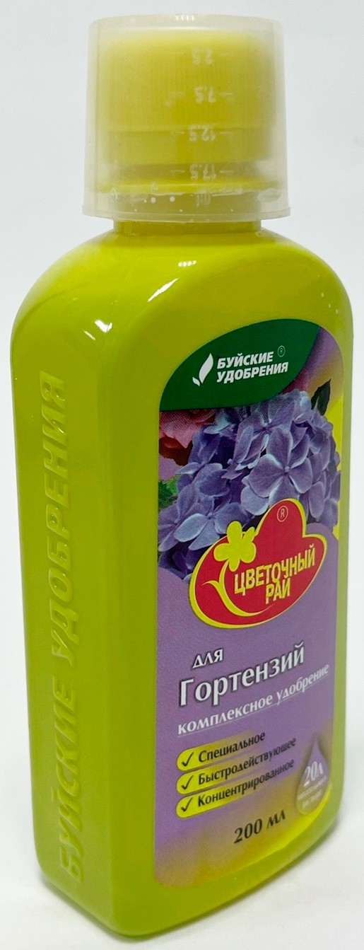 Жидкое комплексное удобрение "Цветочный рай" для гортензииСбалансированный комплекс высокоэффективных, легкодоступных для растений микроэлементов – Fe, Mn, Zn, Cu, в виде сложных органических солей – хелатов, а также B, Mo. За счет этих элементов способствует здоровому росту и развитию растений. Стимулирует развитие побегов, сочной зеленой листвы, обильного и длительного цветения. Устраняет видимые проявления дефицита элементов питания, предотвращает развитие болезней, вызванных недостатком тех или иных микроэлементов.