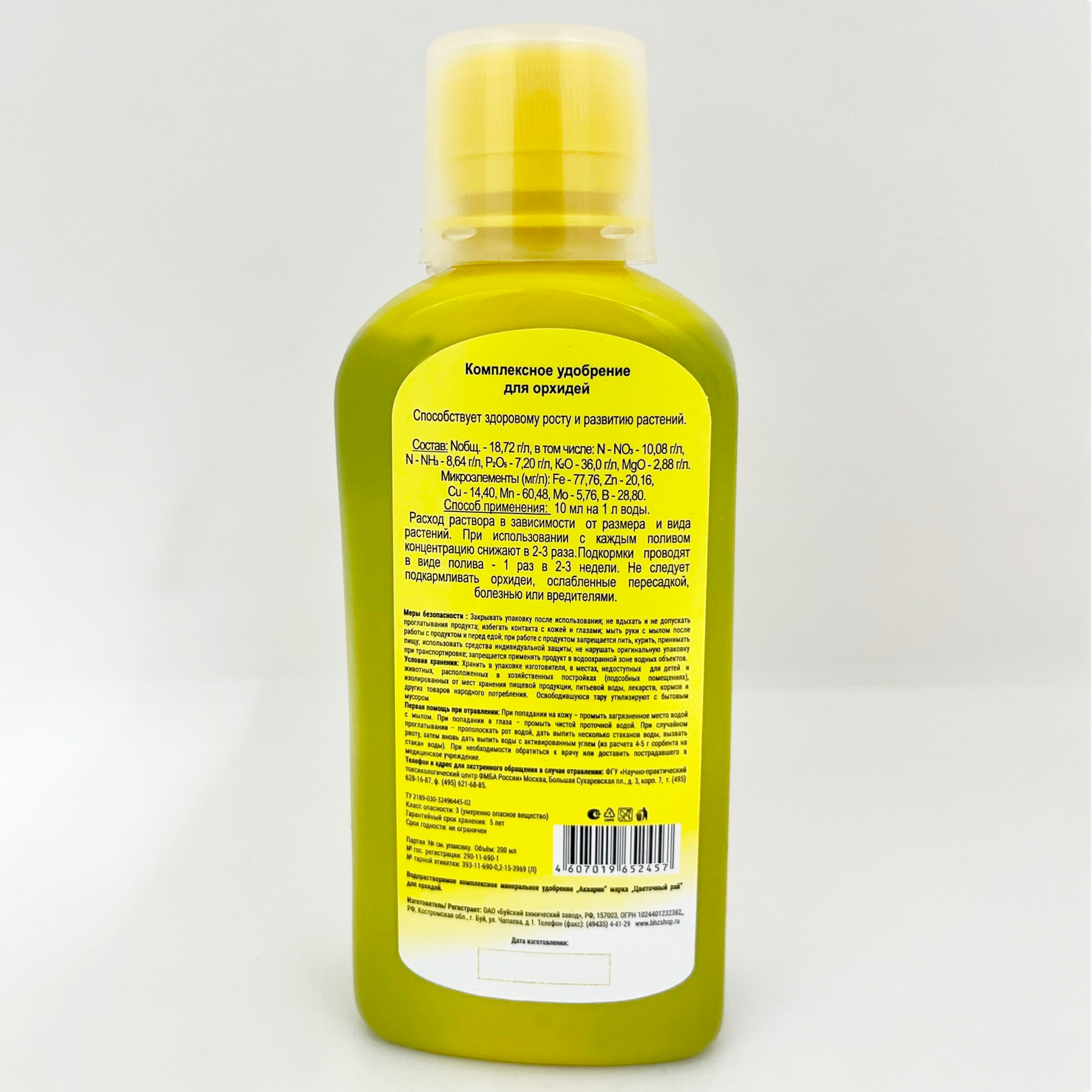 Состав: N (г/л): 18.72, P2O5 (г/л): 7.2, K2O (г/л): 36, MgO (г/л): 2.88.