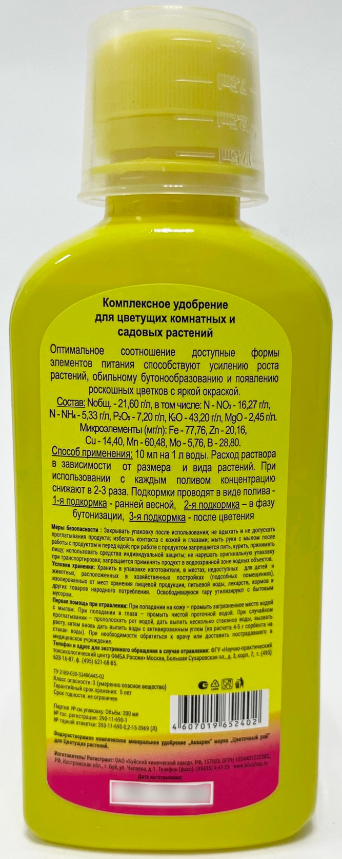 Жидкое комплексное удобрение "Цветочный рай" для цветущих растенийСбалансированный комплекс высокоэффективных, легкодоступных для растений микроэлементов – Fe, Mn, Zn, Cu, в виде сложных органических солей – хелатов, а также B, Mo. За счет этих элементов способствует здоровому росту и развитию растений. Стимулирует развитие побегов, сочной зеленой листвы, обильного и длительного цветения. Устраняет видимые проявления дефицита элементов питания, предотвращает развитие болезней, вызванных недостатком тех или иных микроэлементов.