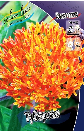 Ваточник Тубероза Многолетнее растение до 50-70 см высотой.Листья расположены супротивно, слегка волосистые, широколанцетные.Цветки желтовато-оранжевые, с приятным ароматом, собраны в зонтиковидное соцветие.Цветение июль-август.Растение влаголюбиво. Хорошо растет и развиваетсяна плодородных, слабокислых или нейтральных почвах. Предпочитает солнечные или полутенистые места. Зимостоек без укрытия, но в первый год после посадки рекомендуется укрытие торфом или лапником.Характеристики