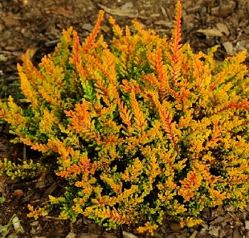 Вереск Уиквор Флэйм Calluna vulgaris Wickwar Flame Вечнозелёный, медленнорастущий, густой кустарничек с мелкими листьями. Цветёт в августе-сентябре. Зимует с укрытием из лапника в бесснежных местах. Хороший почвопокровник.Характеристики
