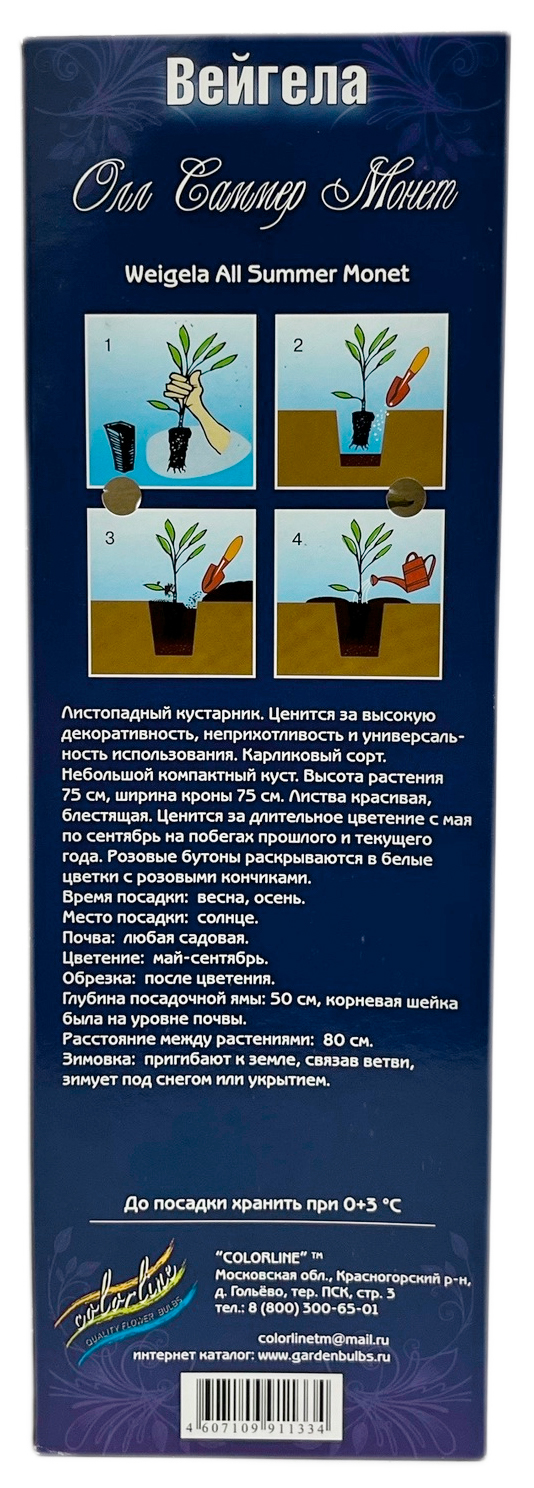 Вейгела Олл Саммер МонетВысота растения 75см. Морозостойкость -34С. Длительное цветение. Листопадный кустрник. Ценится за высокую декоративность, неприхотливость и универсальность использования. Карликовый сорт. Листва красивая, блестящая.