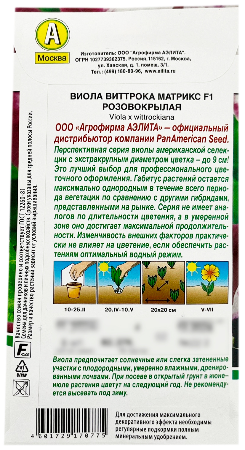 Виола виттрока МАТРИКС F1 РОЗОВОКРЫЛАЯ АЭЛИТАООО «Агрофирма АЭЛИТА» — официальный дистрибьютор компании PanAmerican Seed.