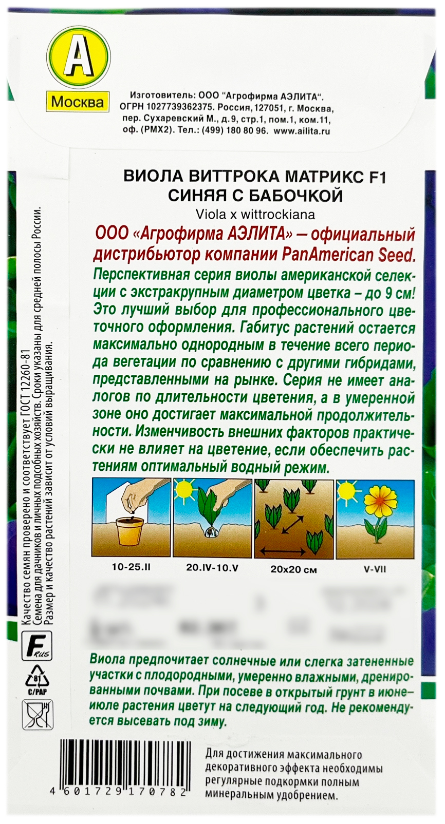 Виола виттрока МАТРИКС F1 СИНЯЯ С БАБОЧКОЙ АЭЛИТАООО «Агрофирма АЭЛИТА» — официальный дистрибьютор компании PanAmerican Seed.