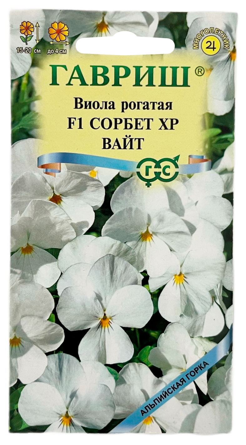Виола Сорбет XP Вайт F1 рогатая (Анютины глазки) 4шт семена