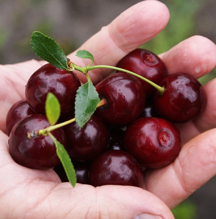 Вишня Кармин Джуел Prunus x Carmine Jewel Естественная карликовая форма (не привитая). Самоопыляющийся сорт. Цветет обильно весной с середины до конца мая, цветки бело-розовые. Плоды крупные (около 4 г), пурпурно-красного цвета, очень сочные.Характеристики